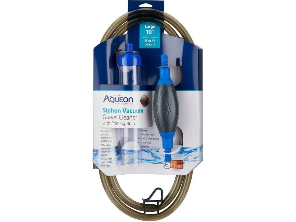 Keeping your aquarium in top condition requires regular maintenance. Routine water changes and clearing debris from the gravel are essential to preserve a healthy aquatic environment. The Aqueon Siphon Vacuum Gravel Cleaner simplifies these tasks, saving you time and effort. With just a few up-and-down movements of the intake tube, you can easily start the siphon and initiate water flow. A handy priming bulb is also provided as an alternative way to get the water moving. As water flows, debris is extracted and removed, while the gravel settles back into place at the tank's bottom. Remember to use Aqueon Water Conditioner when refilling your aquarium with fresh water. This cleaner comes in five different sizes to suit various aquarium capacities.