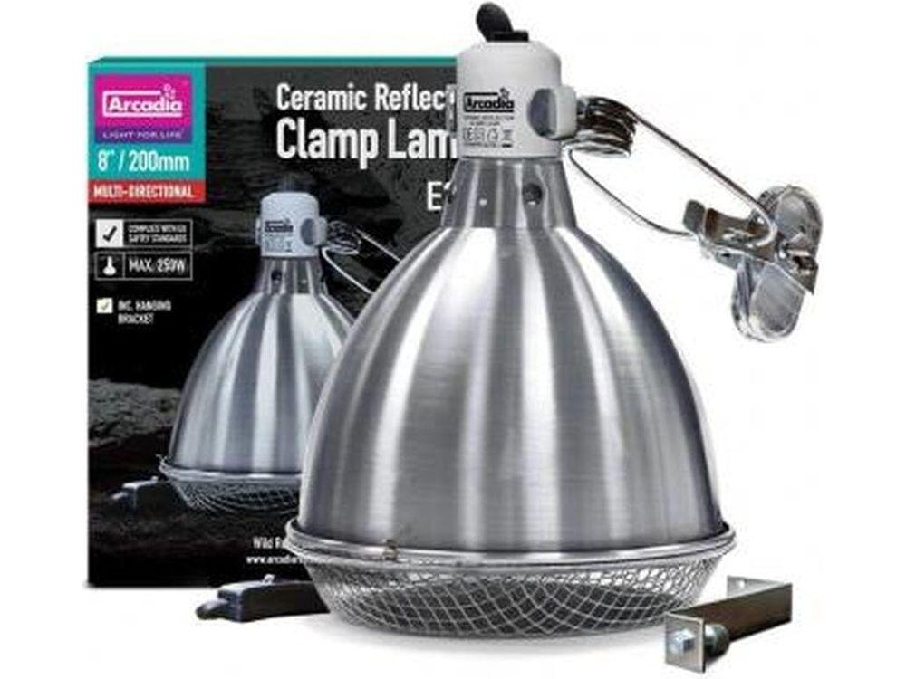The Arcadia 8" Ceramic Reflector Lamp Kit is a complete solution for mounting Mercury vapour lamps and other heat or light sources above an open table setup. With the included vivarium adapter, it can also be securely installed inside a reptile enclosure.